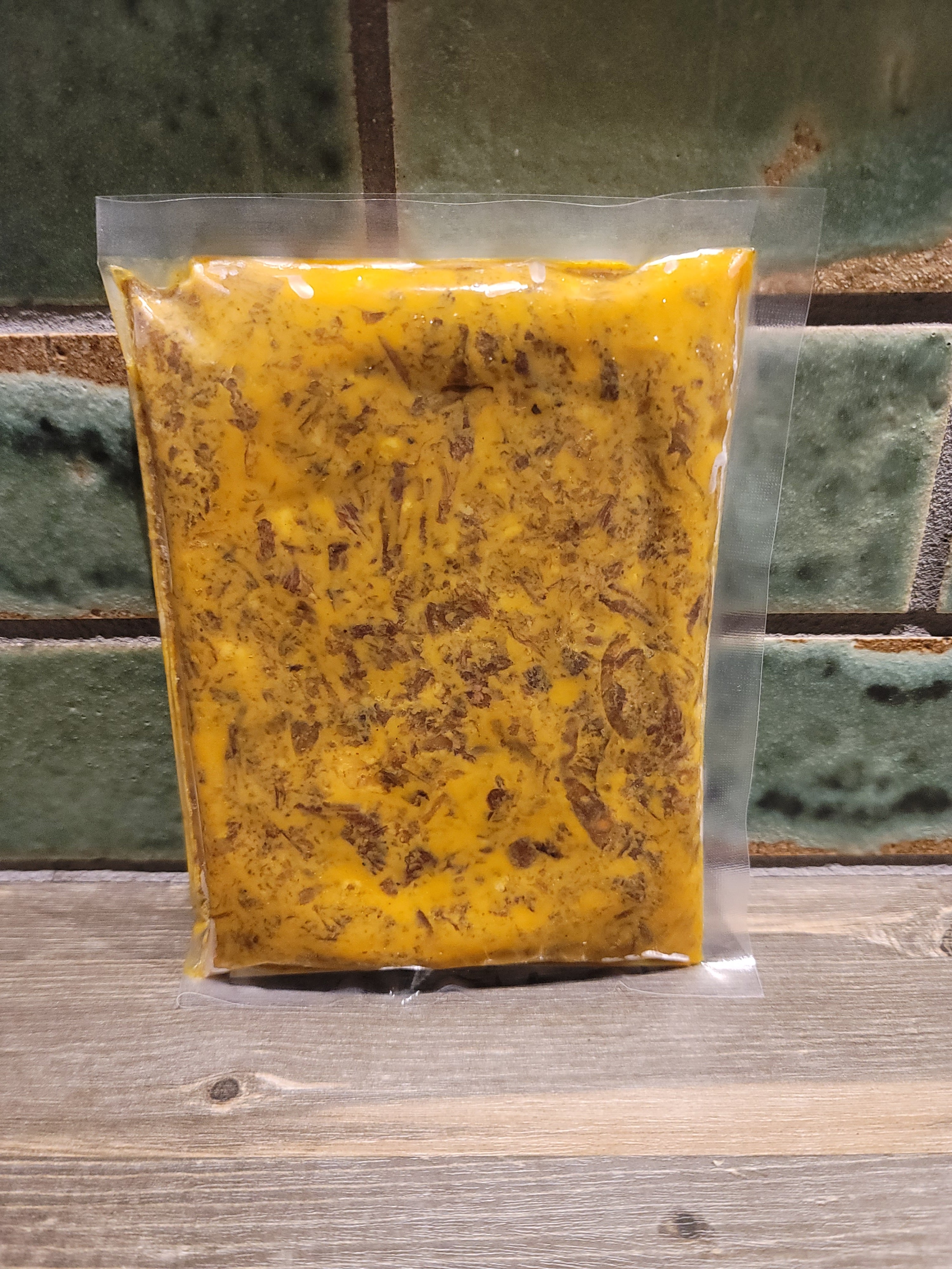 マトン(スペイン産)、羊脂、玉ねぎ、にんにく、生姜、香辛料、塩、青唐辛子、ギー(乳成分含む)